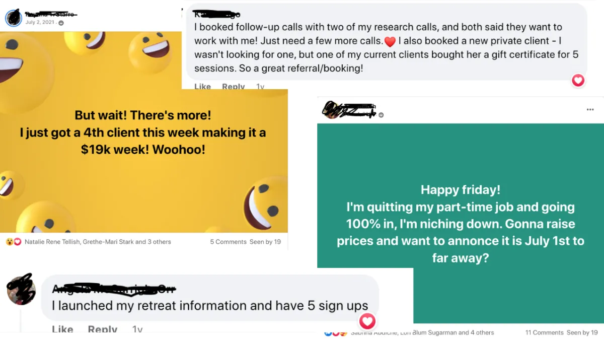 Hot Seat coaching calls so that you can get coached as you are implementing the strategy!