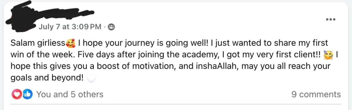 Facebook group community, so you can constantly support and have a sense of community with other Muslimah women that are as ambitious and motivated as you!